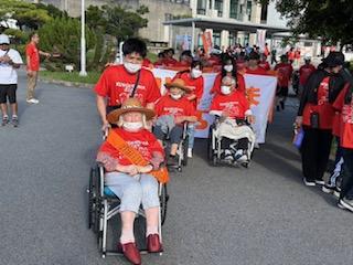 認知症を多くの方に理解していただくためのイベントでうるま市役所からゴールのうるみんまで皆様と一緒に写真のような形で歩いてきました。