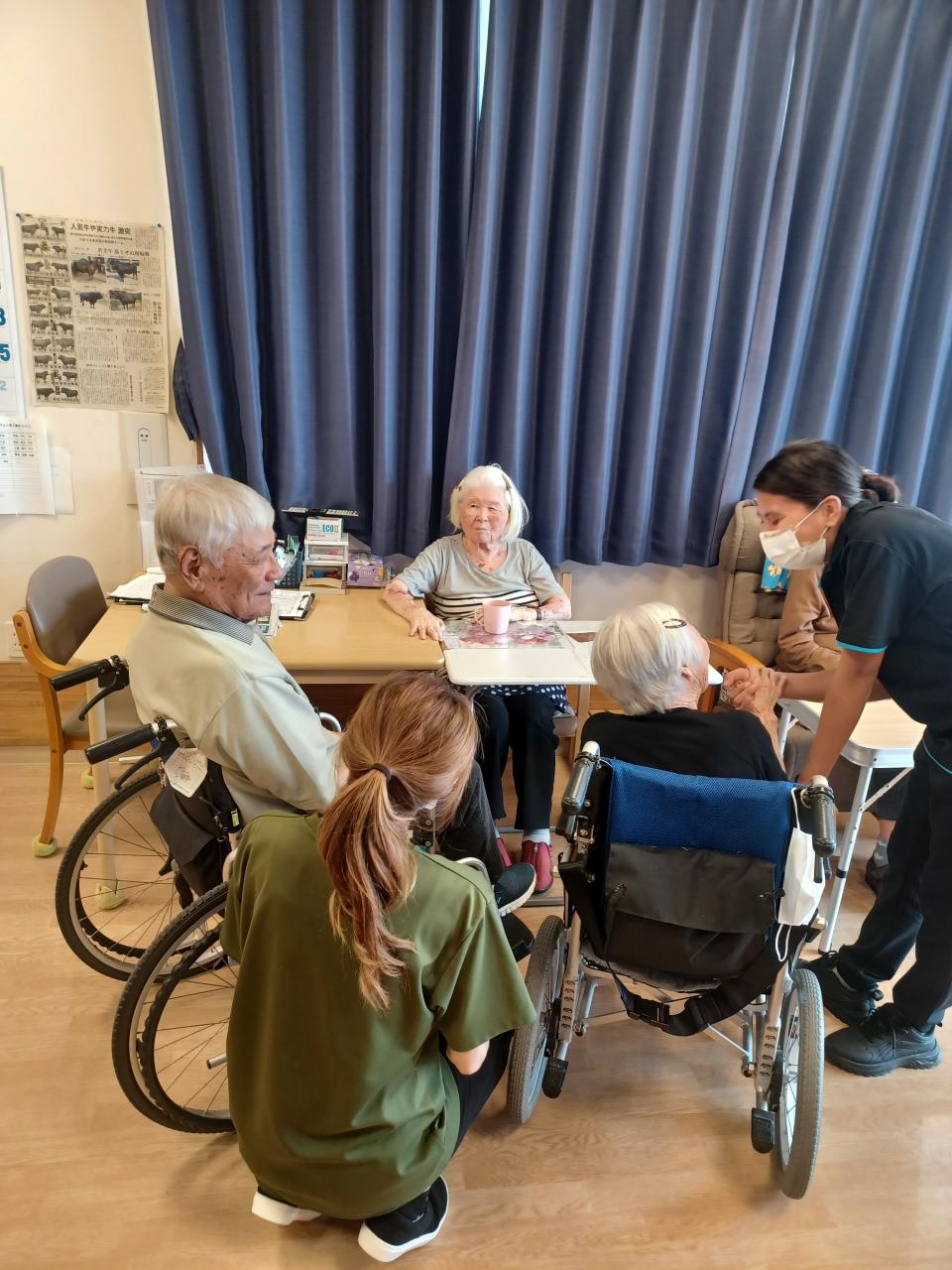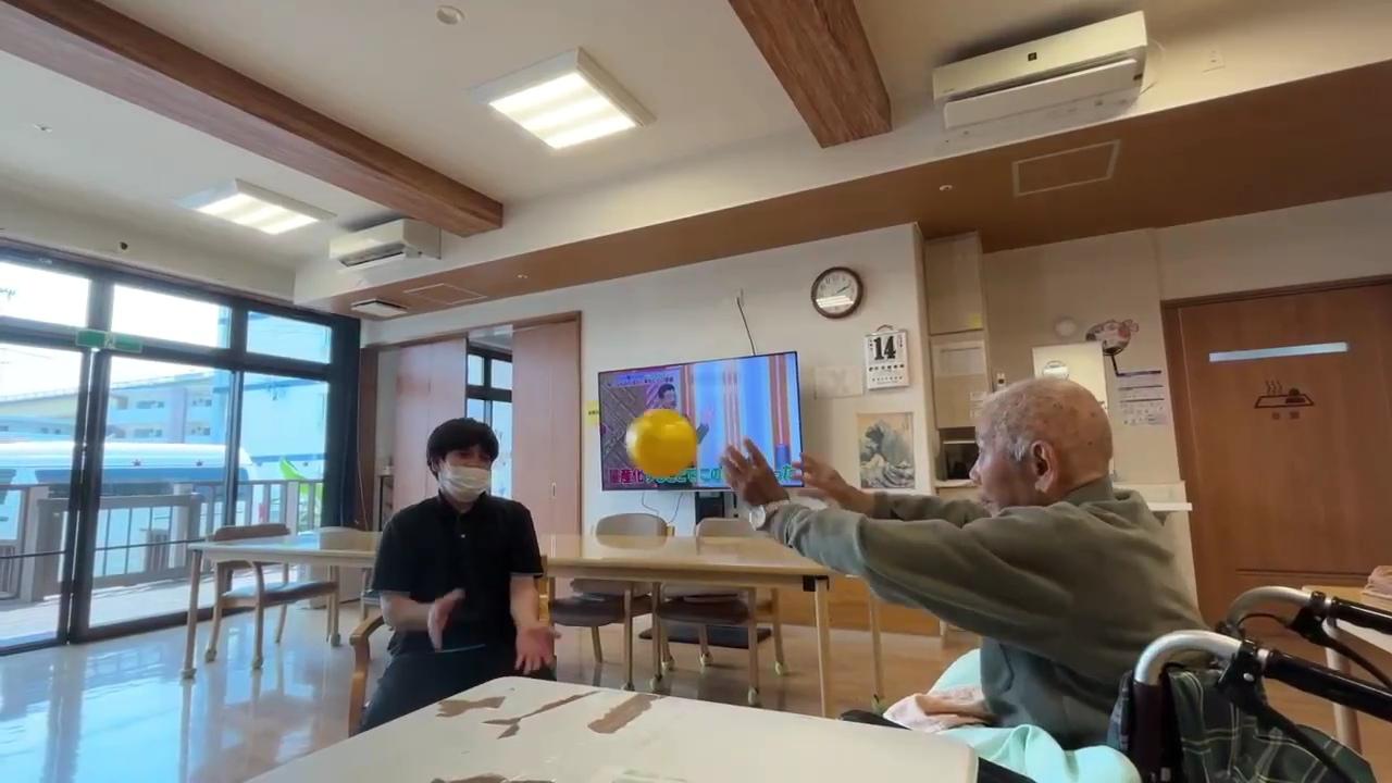かえででは、裁縫をする様子や、たくさんの家族面会があり、かえでテラスでは、職員とボールを使って運動する様子がありましたo(^o^)o