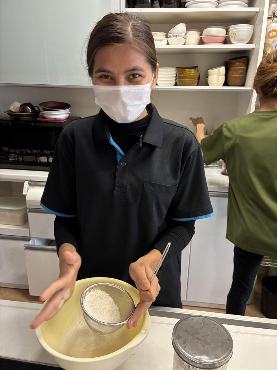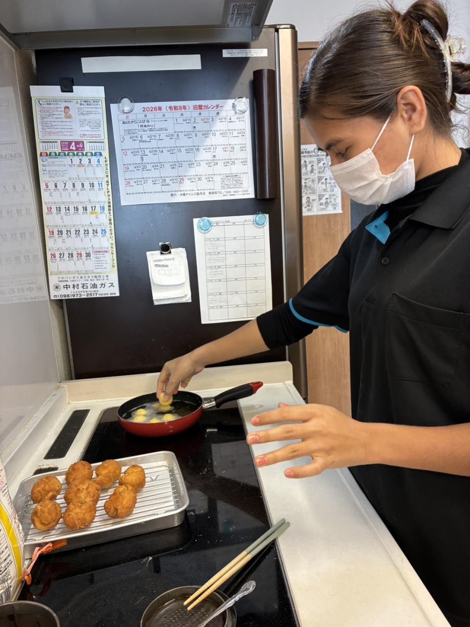 特定技能実習生のアディカリさんが、サーターアンダギー作りに挑戦、とても美味しく頂きました。