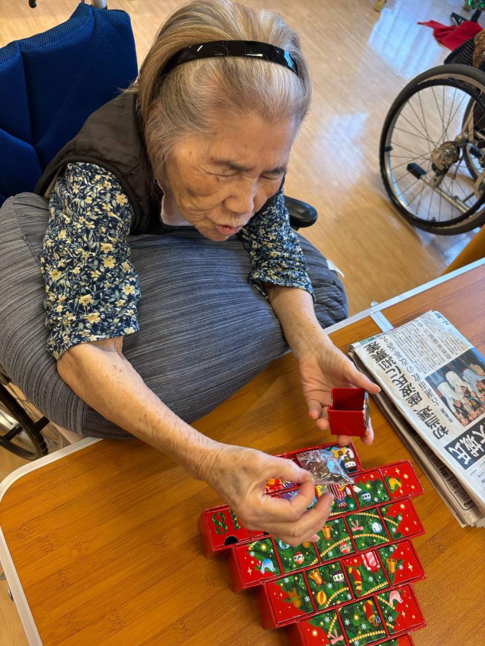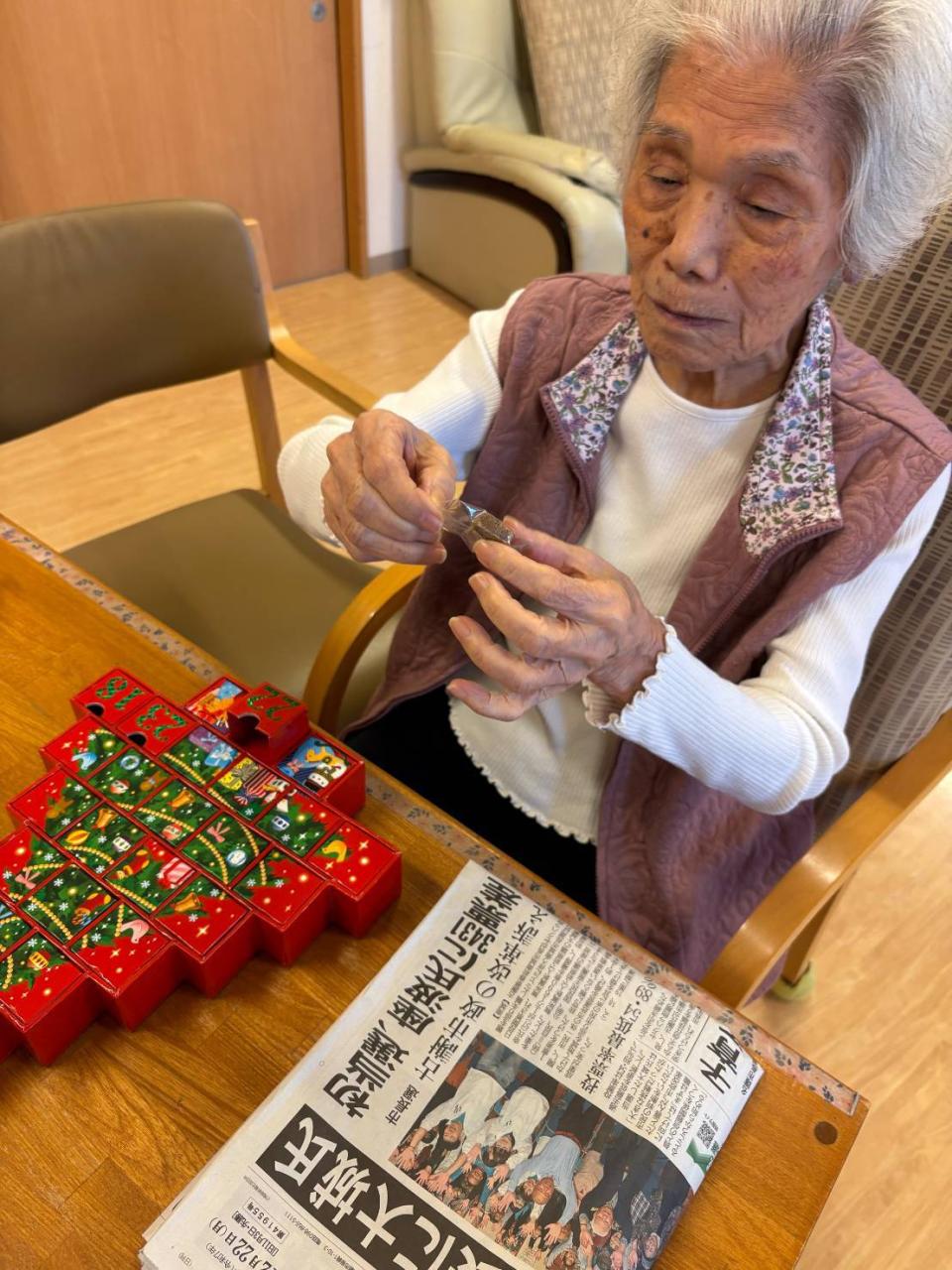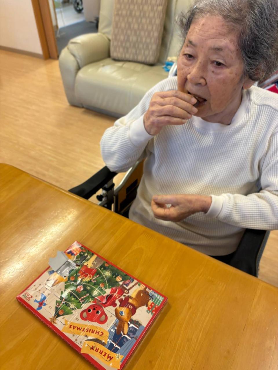 もう少しでクリスマス♡ アドベントカレンダーで、カウントダウン中の皆さんですo(^o^)o かえでのクリスマス会は、26日(金)です♪ 職員の出し物やボランティア学生の民謡、ご家族様のピアノ演奏と盛りだくさん! 楽しい会になります様に♡