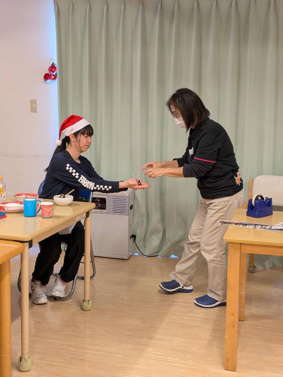 クリスマスプレゼントもありました♪ ボランティア高校生と利用者代表で、みんなに配って頂きましたよ(^ー^)