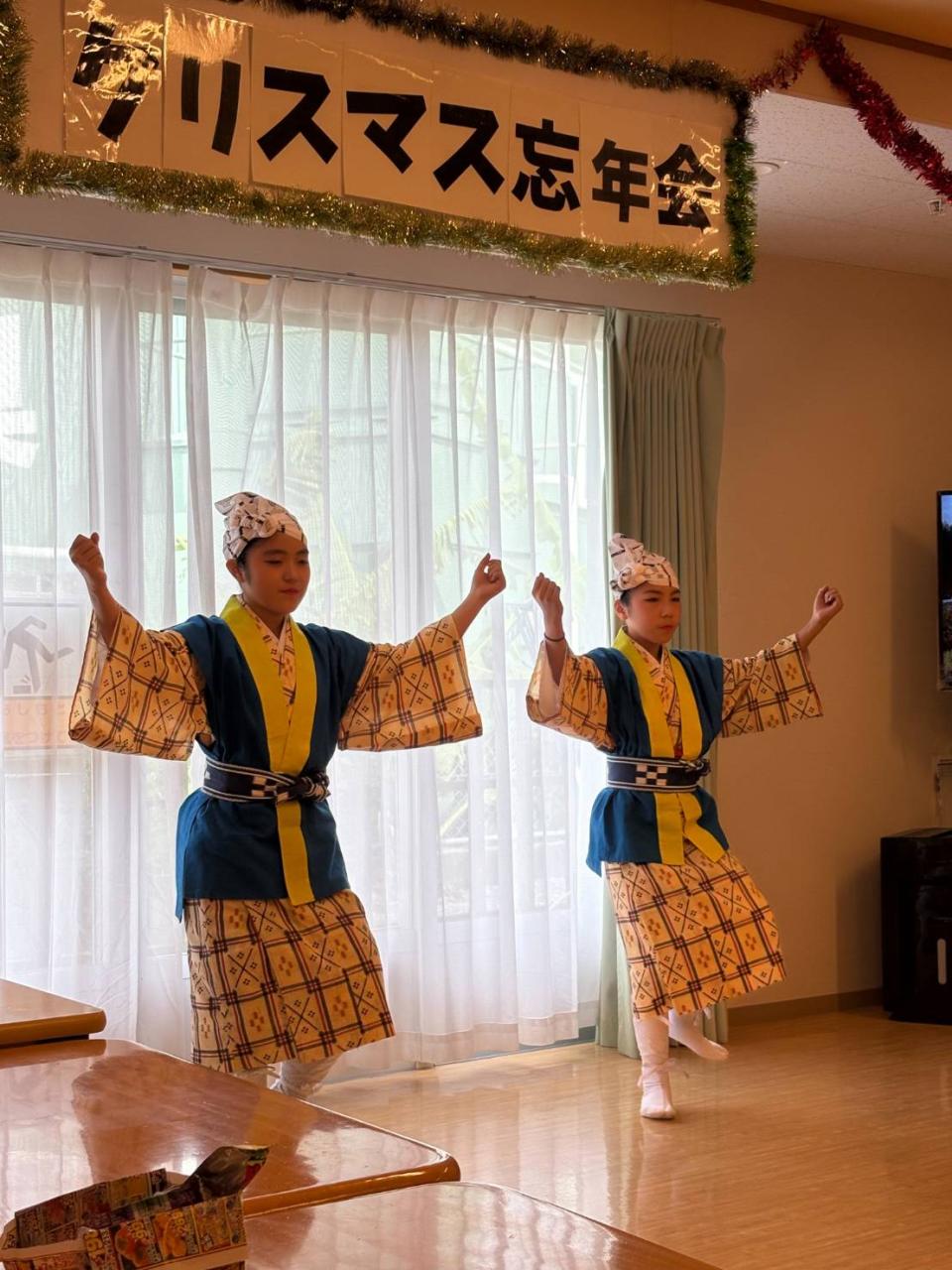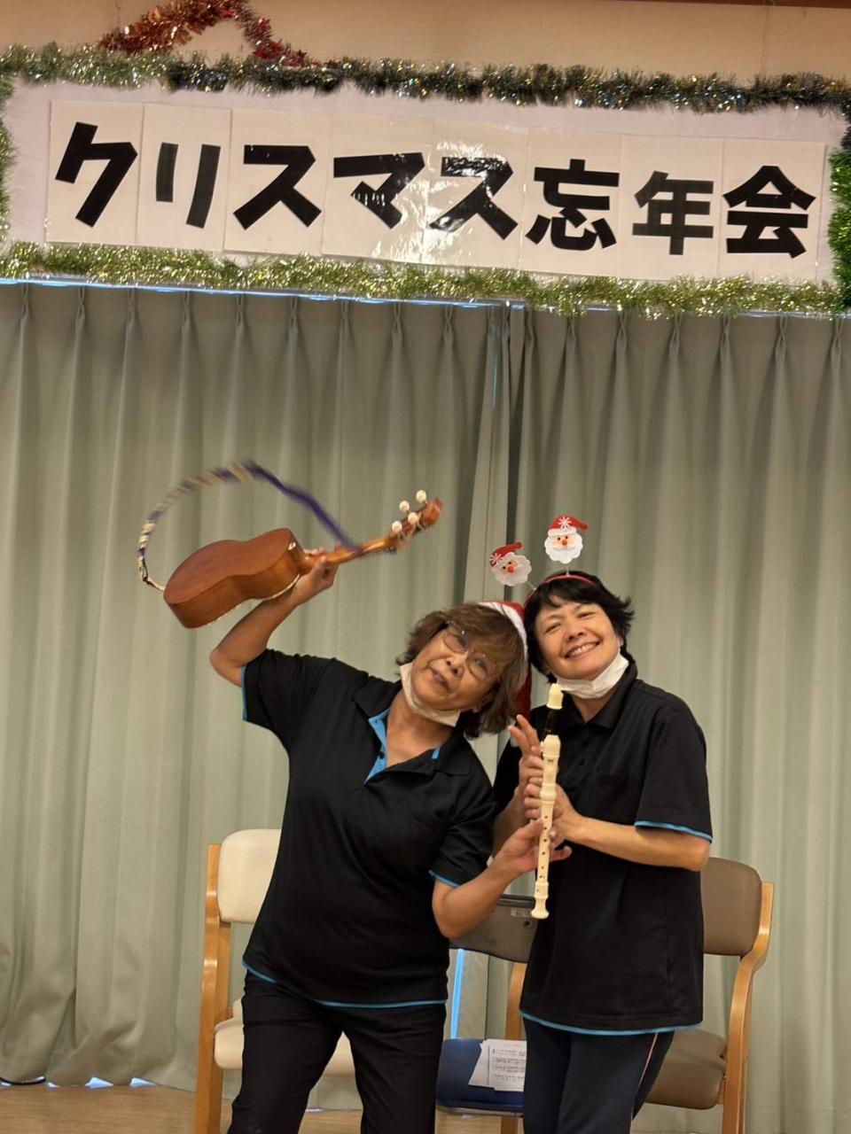 職員もこの日のために練習しました! トナカイ&クリスマスツリーのダンス♪ リコーダーとウクレレのクリスマスソング演奏♪ ケアマネのマジックショー♪ 最後は本格的な躍りと民謡に、大きな拍手が贈られました♡