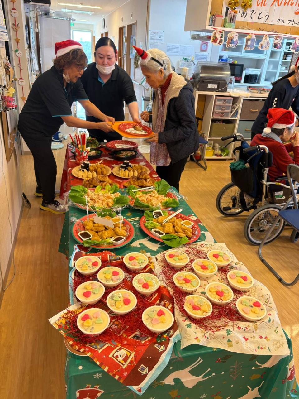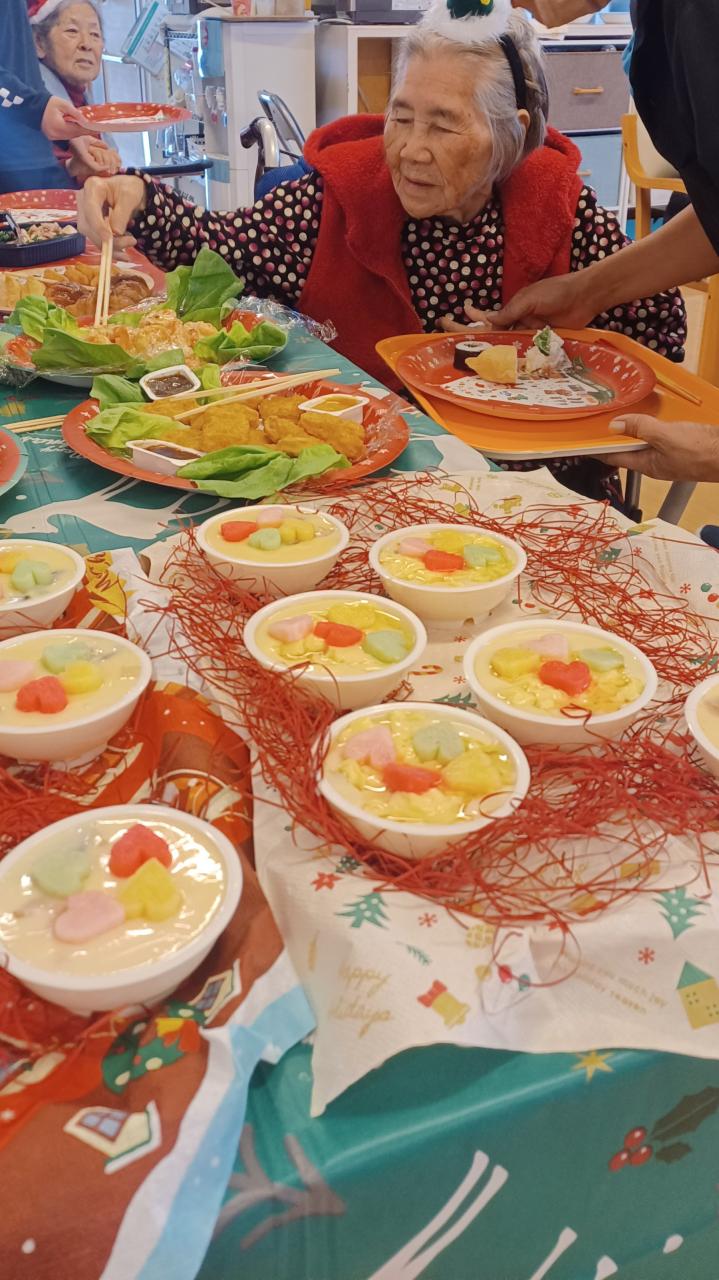 今日は今年最後のイベント「クリスマス忘年会」(^-^)/ 豪華な食事に、職員による余興、ボランティア中学生による躍りと民謡と盛りだくさんでした♡ 皆さん、今年も1年元気でいてくれて、ありがとうございましたo(^o^)o 来年も楽しく元気に宜しくお願いします!