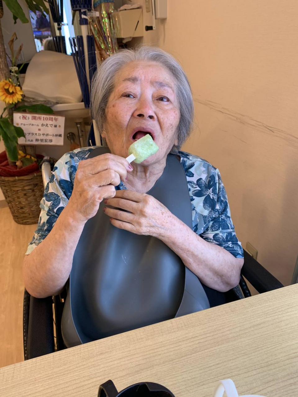 今日のおやつは、アイスクリームでした♡ 週末は、面会に来られるご家族様が多く、皆さん喜ばれます♪