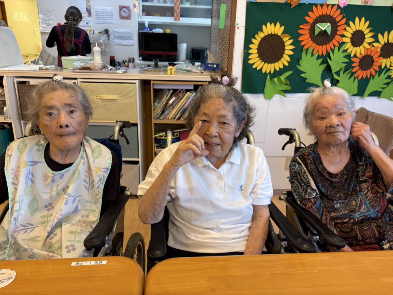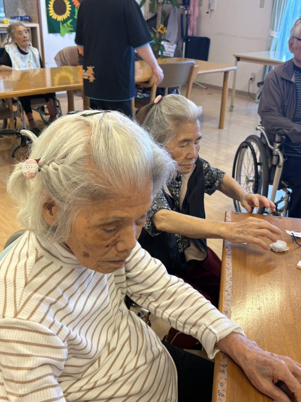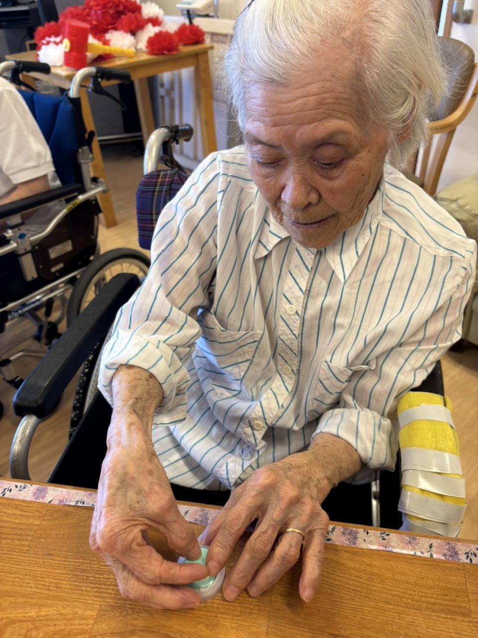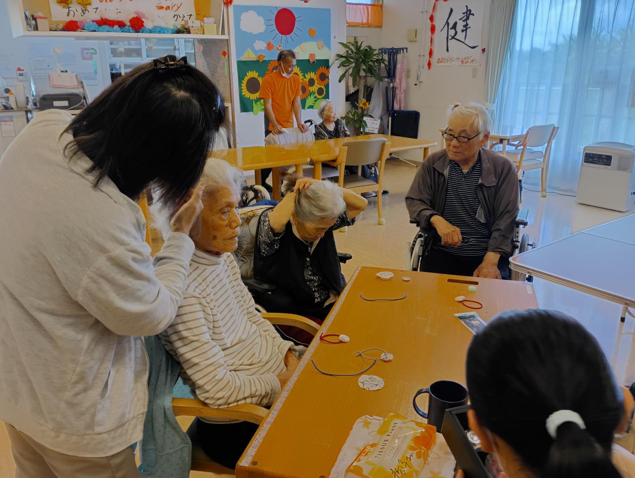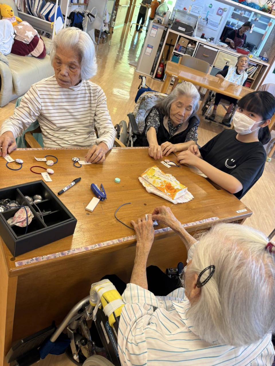 今日は、ヘアアクセサリー作りをしました♡ボランティアの高校生に教えてもらい、家族さんへのプレゼント用も作りましたよー(’-^*)