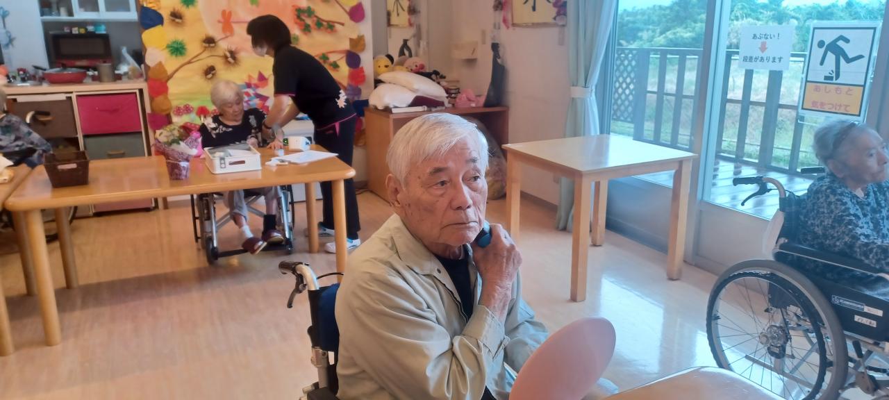午前中の様子(^o^)/ 食事終わりの時間♪ TV見たり、看護師の健康チェック、髭剃りタイムです!