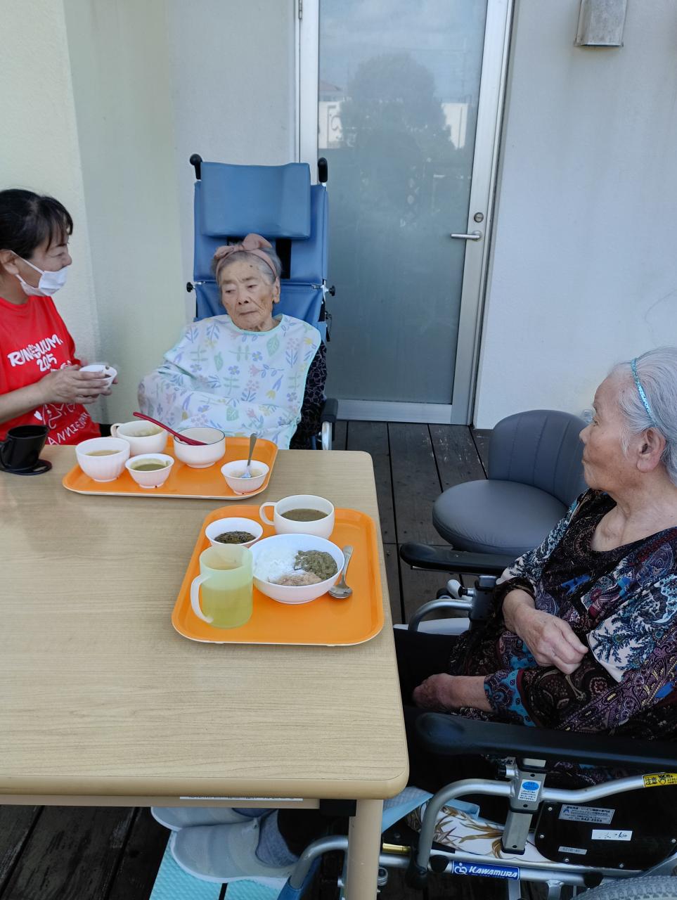今日は、お天気が素晴らしかったので、テラスに出て、お昼ご飯を頂きました♡気持ちいい風の中で、畑のナーベーラーの話で盛り上がり、楽しく食事しました♪