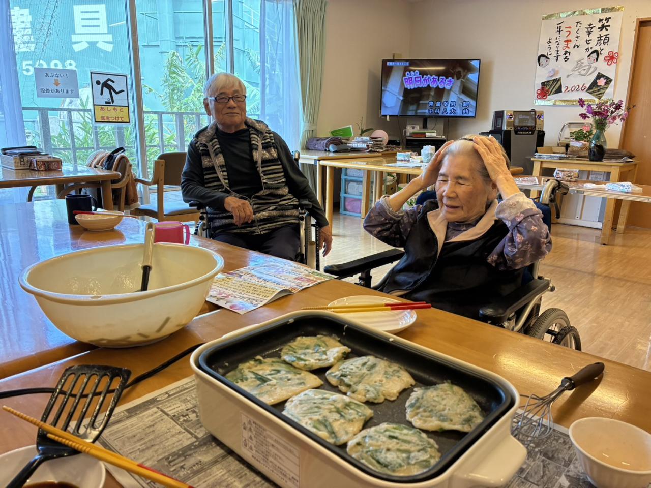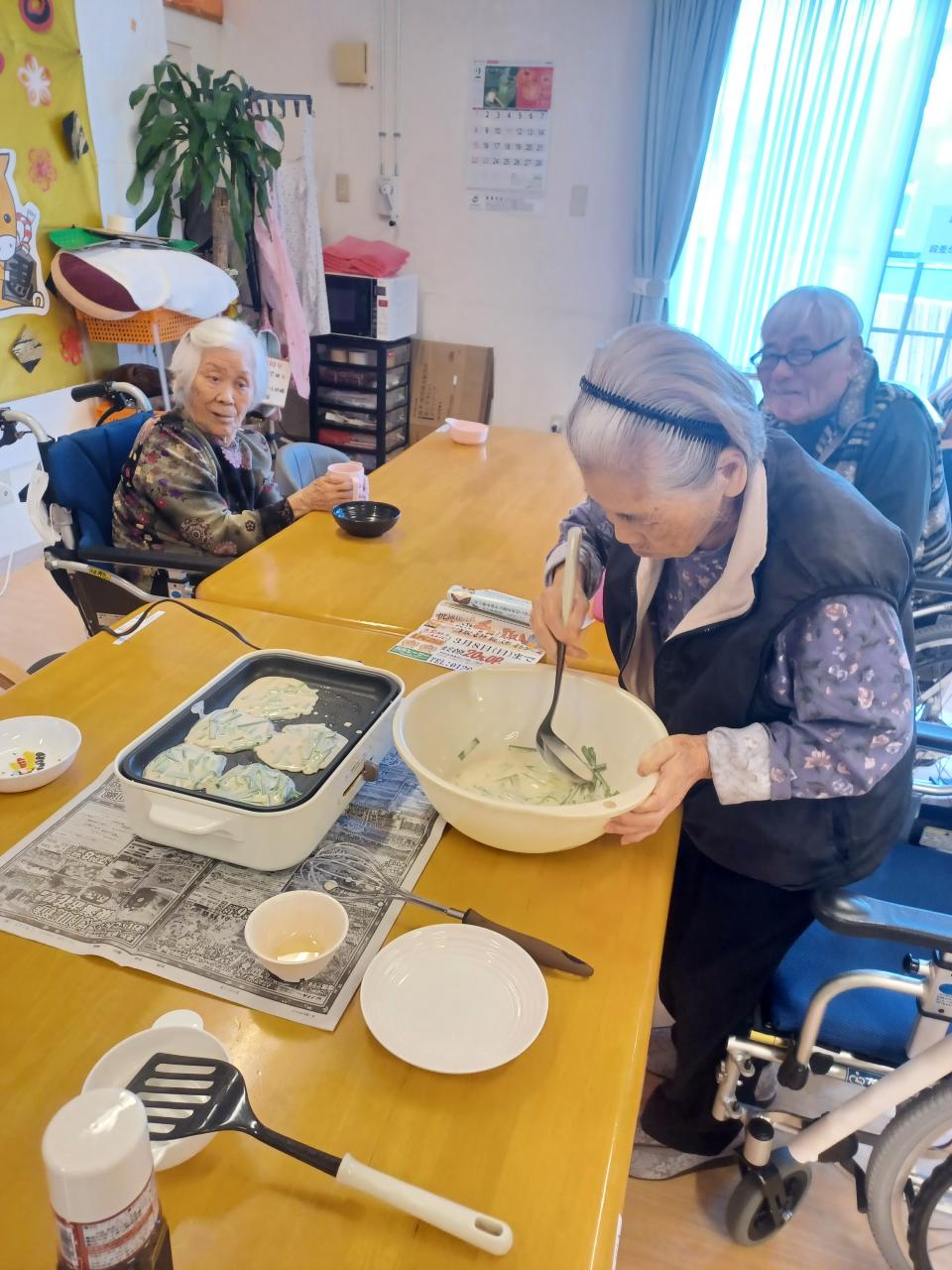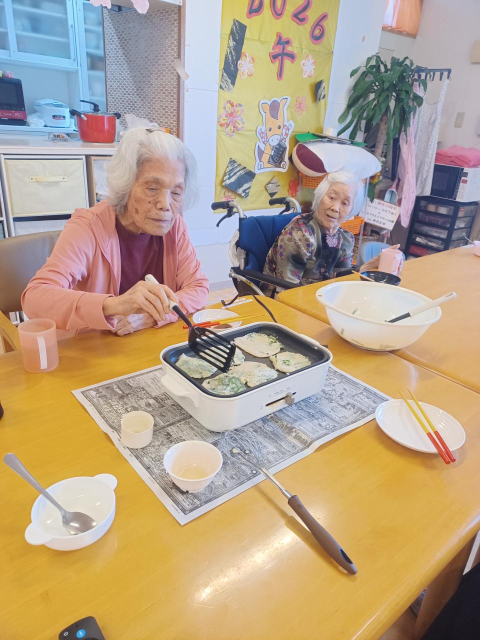 今日は、おやつにヒラヤーチーを作って頂きましたよ♡美味しく出来て、皆さんおかわりしていました(^ー^)/