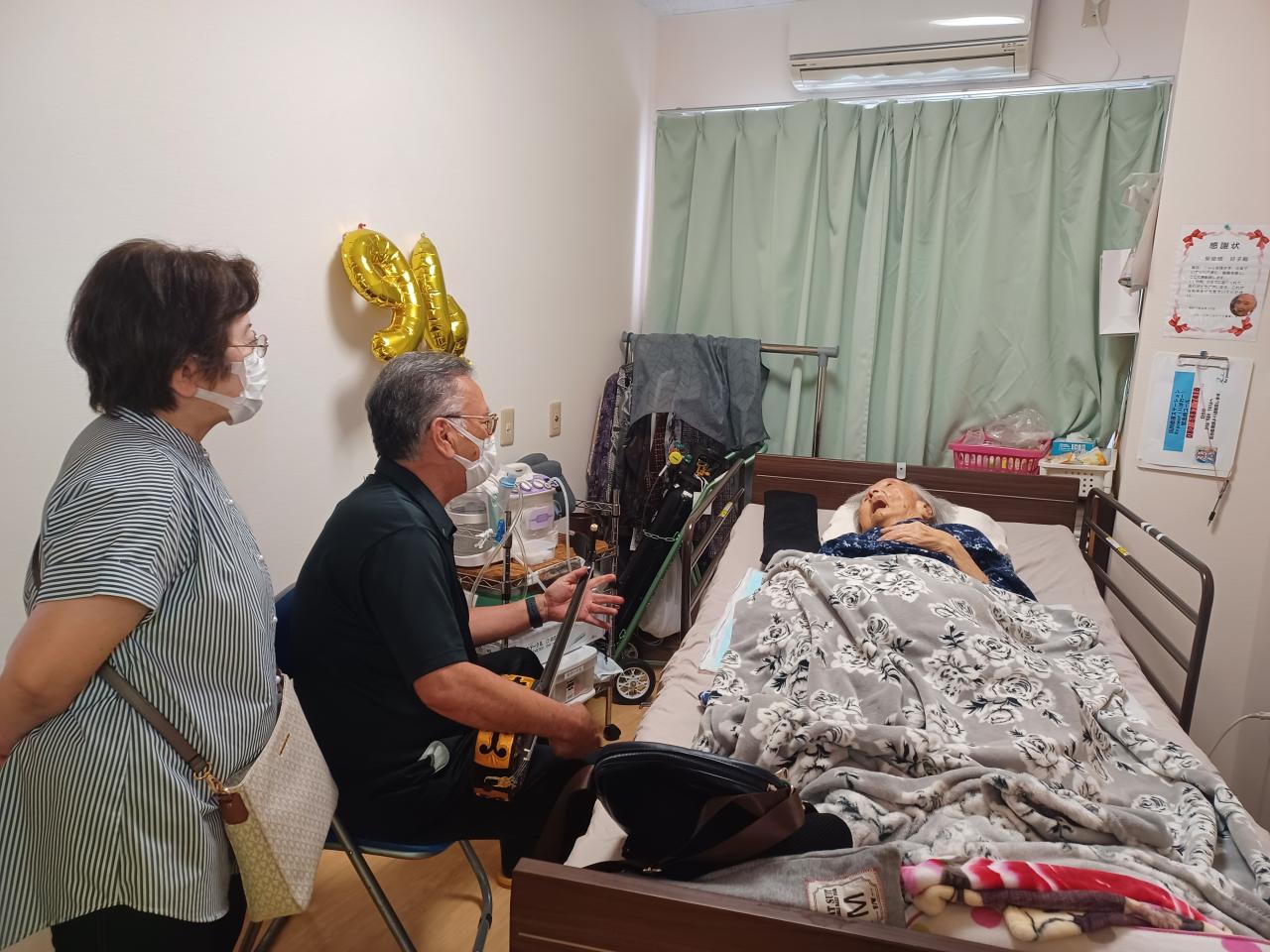 息子さんが三線を弾いてくれて、喜ばれる様子もありました♪