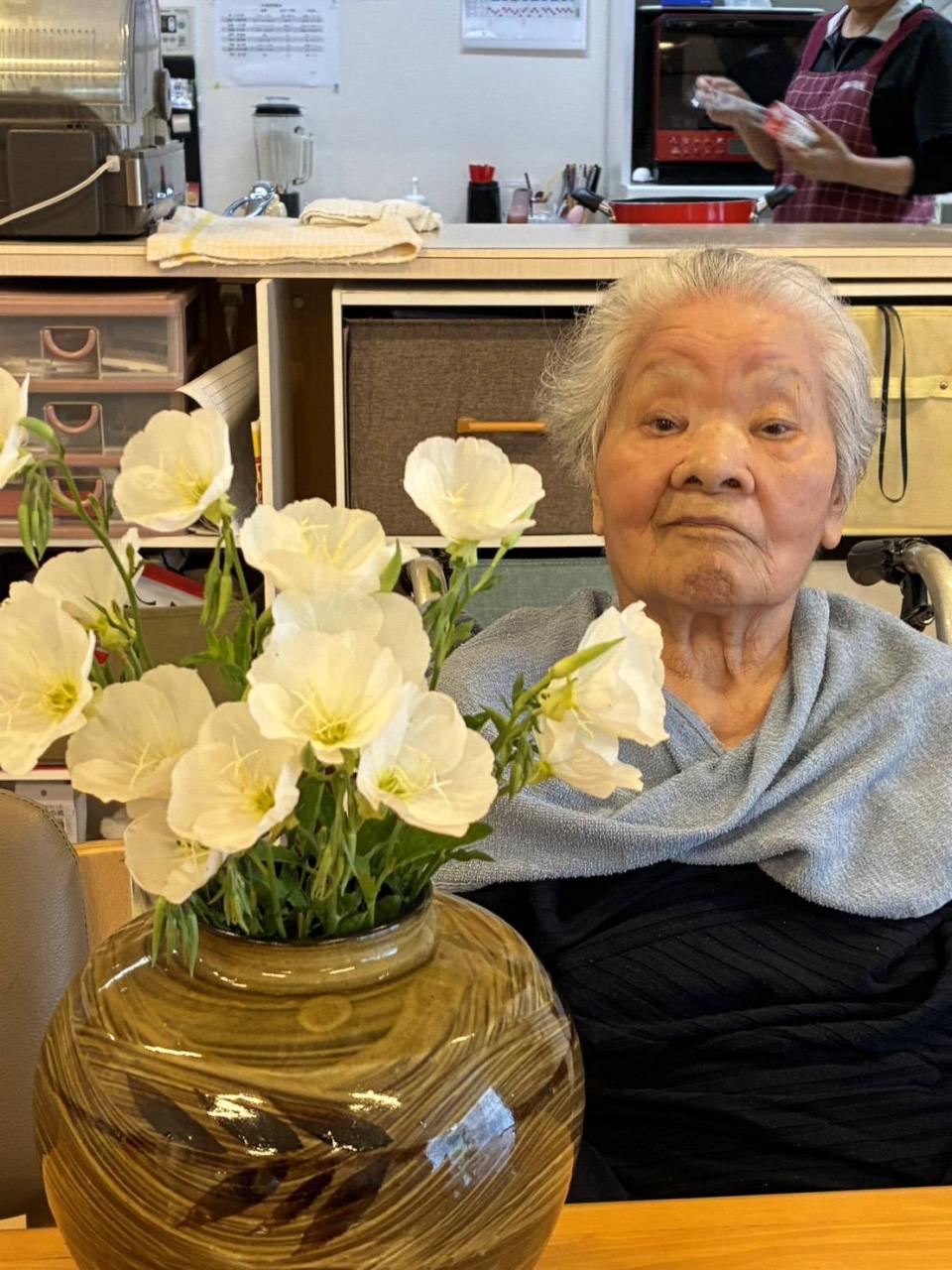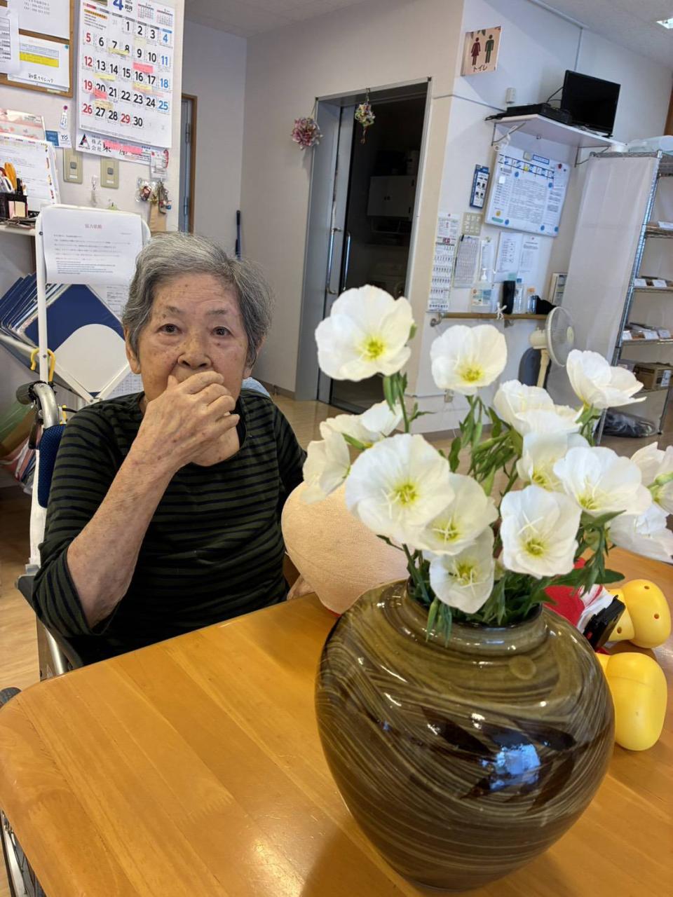 庭に咲いたお花と記念写真を撮ったり、リクエストで春日八郎さんと田端義夫さんの動画を見て、喜ばれる様子がありました♡