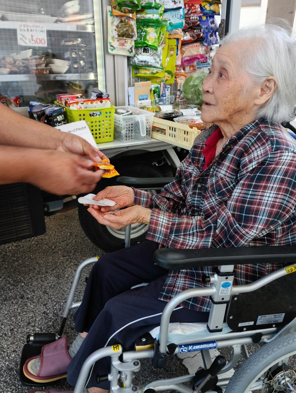 今日は、移動売店の方が回ってきてくれました。今日のオヤツを購入して頂きましたよー♡