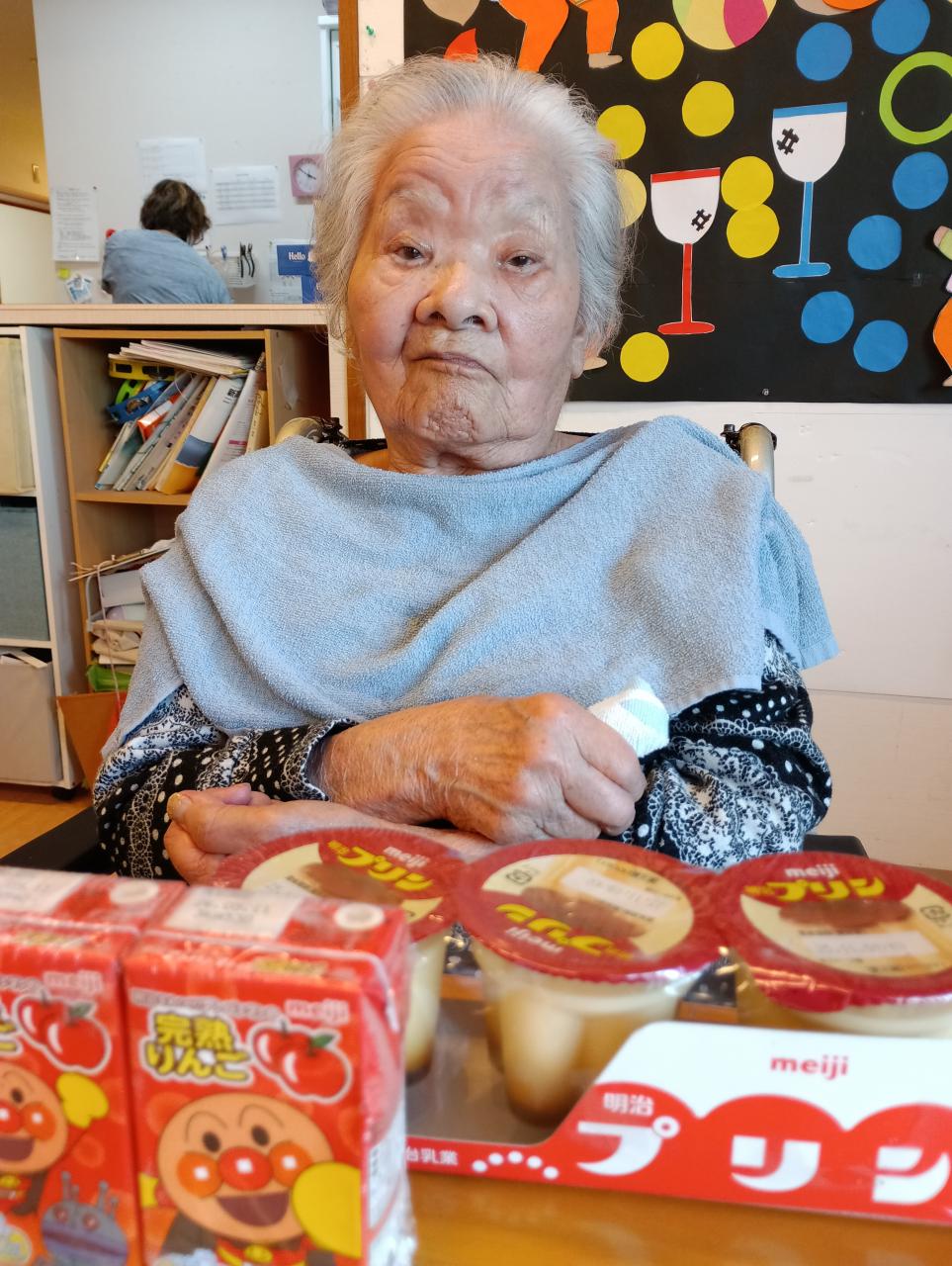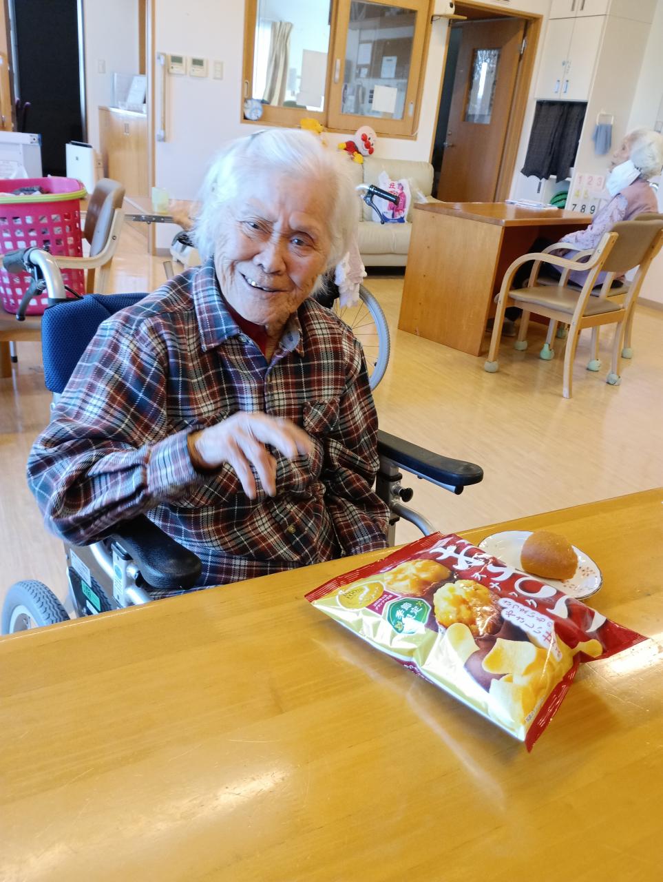 大好きなお芋を沢山もらい、ニコニコです♡ご家族様から、かえでの皆さんへ差し入れも頂き、美味しく頂きました♪